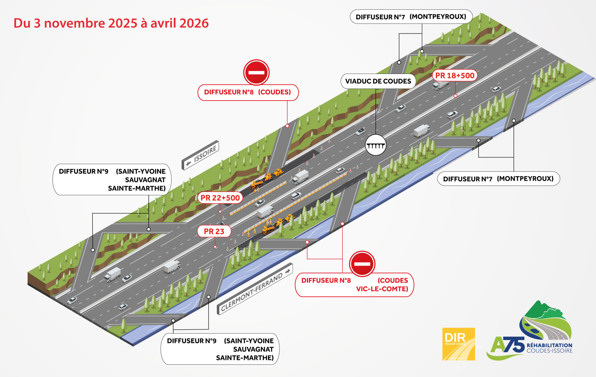 Chantier A75 Coudes-Issoire du 3 novembre à avril 2026