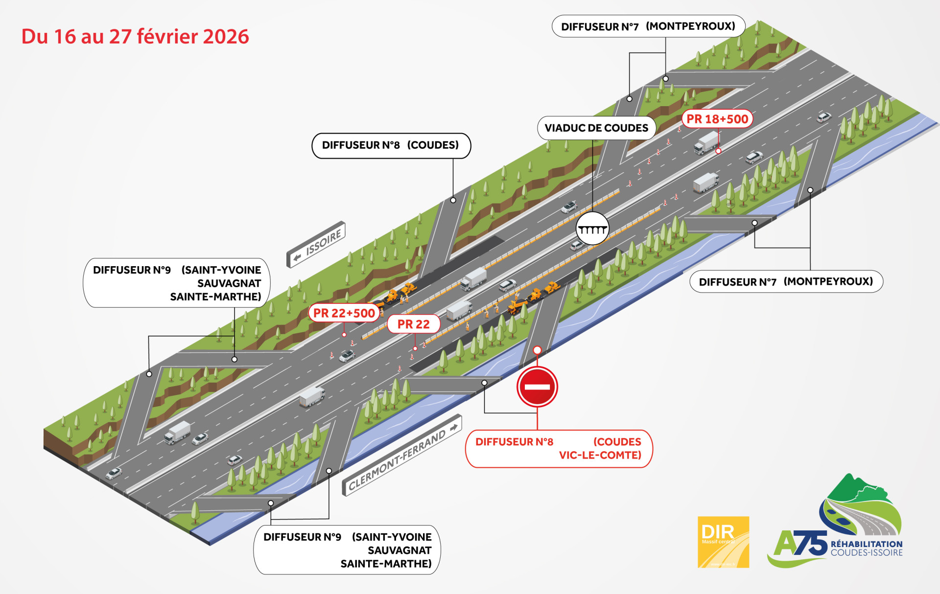 Chantier A75 Coudes-Issoire - Modification des conditions de circulation du 16 au 27 février 2026